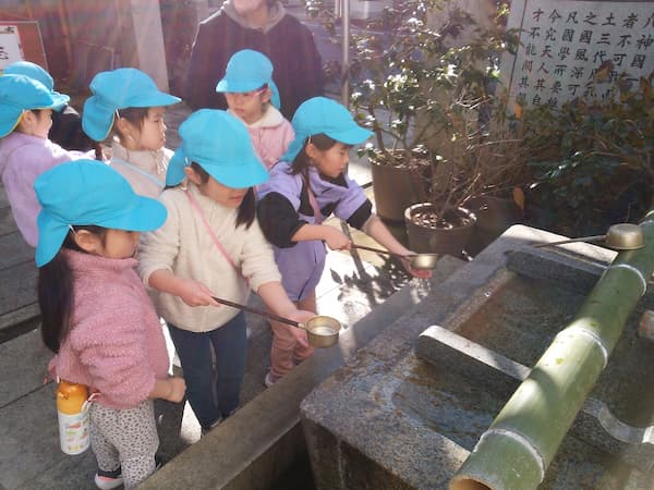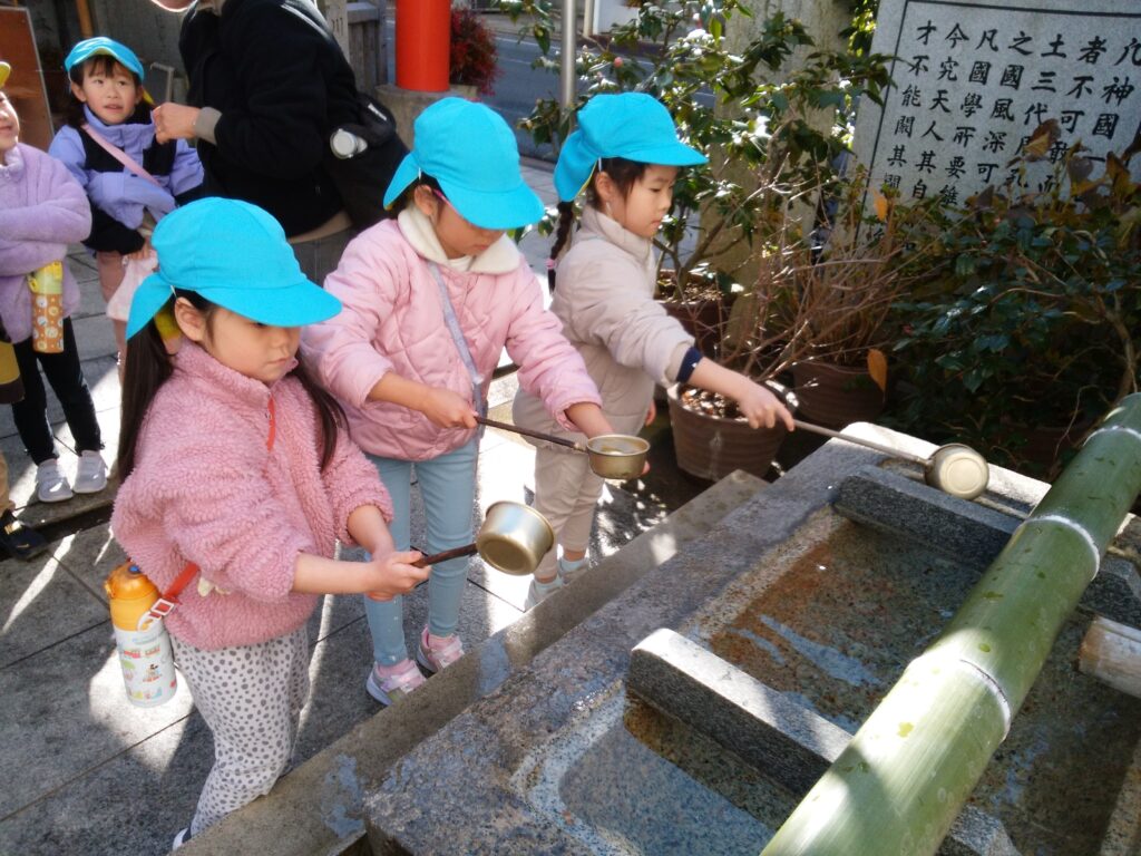 (年長)たいよう組さんが保育園のみんなを代表してお参りに行き、ご祈祷していただきました