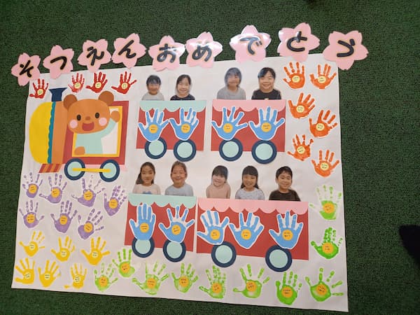 大好きカラーのコサージュをつけて、「未来への希望」に胸を膨らませながらハツラツと巣立っていきました。卒園式では、一歩一歩力強く入場する姿や卒園証書を受け取る姿に頼もしさを感じ、感慨深いものがありました。